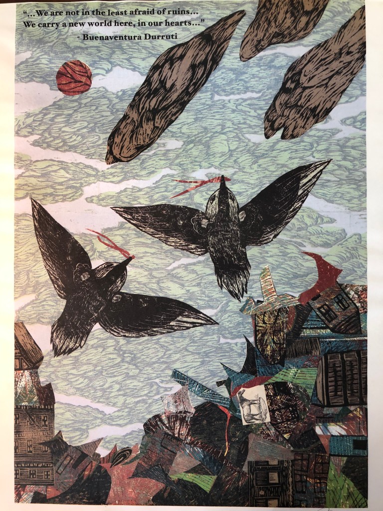 The quote is from Buenaventura Durruti. I didn’t know who Durruti was when I purchased the print from a funky little craft store in downtown Providence. At the time I was pastoring a dying congregation through a major transition, and the words along with the image resonated with me. The congregation knew that things were falling apart. They saw all the empty pews every Sunday. And they were afraid. Their fear, however, just made things worse. The more they tried to control the situation, the faster things deteriorated. Part of my job was to help the congregation calm down, step back, and accept that things would never be the way they were. The spiritual practice of simply sitting in the ruins of what once was creates a space in which a new world can arise. Later I learned that Durruti died fighting Facists during the Spanish Civil War. Key to Durruti’s struggle for a more just world was the ability to courageously face the ruins while carrying a new world in his heart.